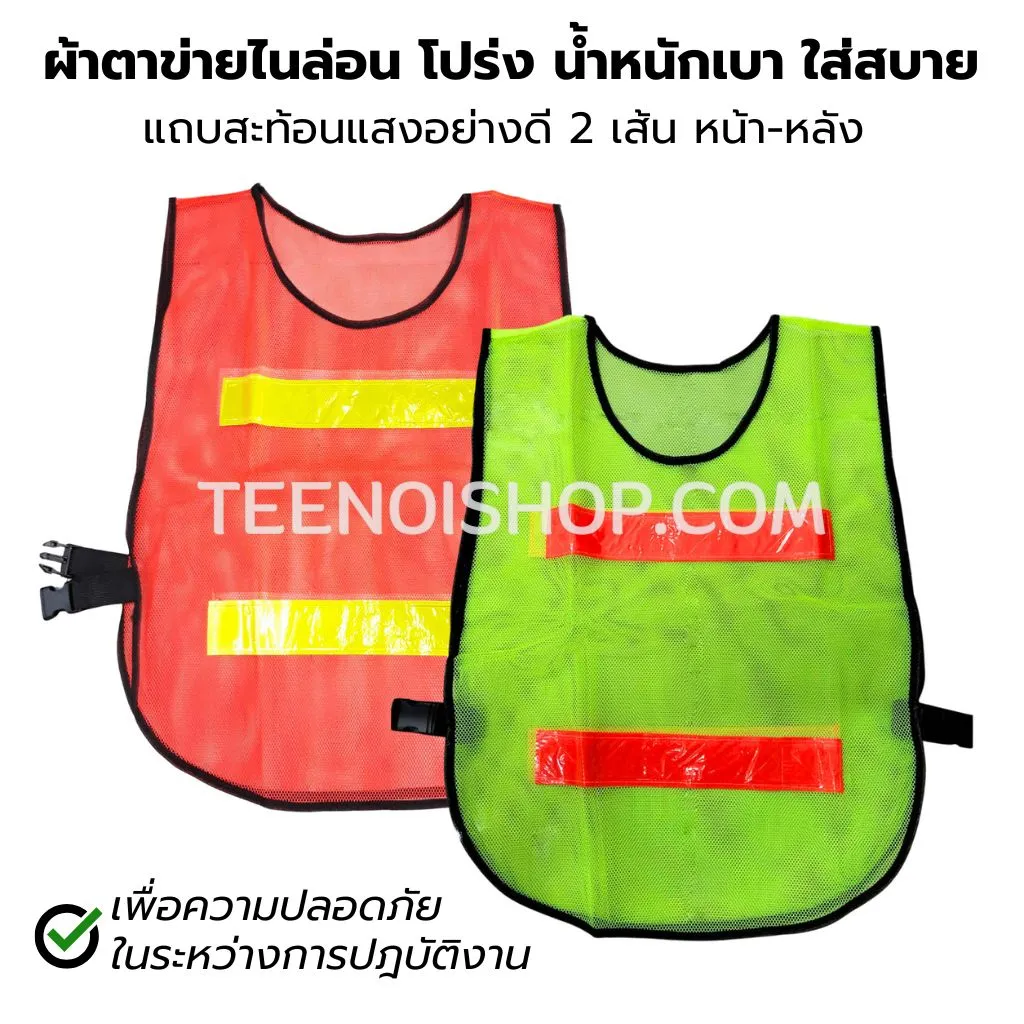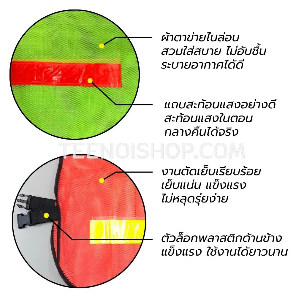 • ตัวเสื้อและแถวสะท้อนแสง สีตัดกันชัดเจน