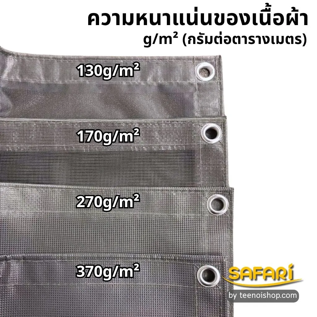 - 270g/m² – ทนทานระดับกลาง เหมาะกับงานก่อสร้างหรือพื้นที่ลมแรง