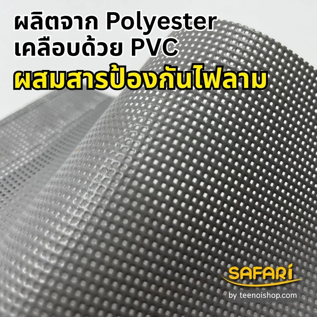- เคลือบ PVC บนเส้นใยโพลีเอสเตอร์ แข็งแรง ทนต่อแดดและฝน