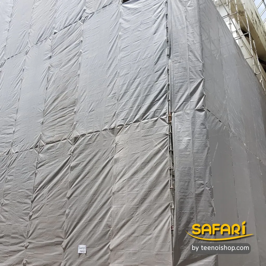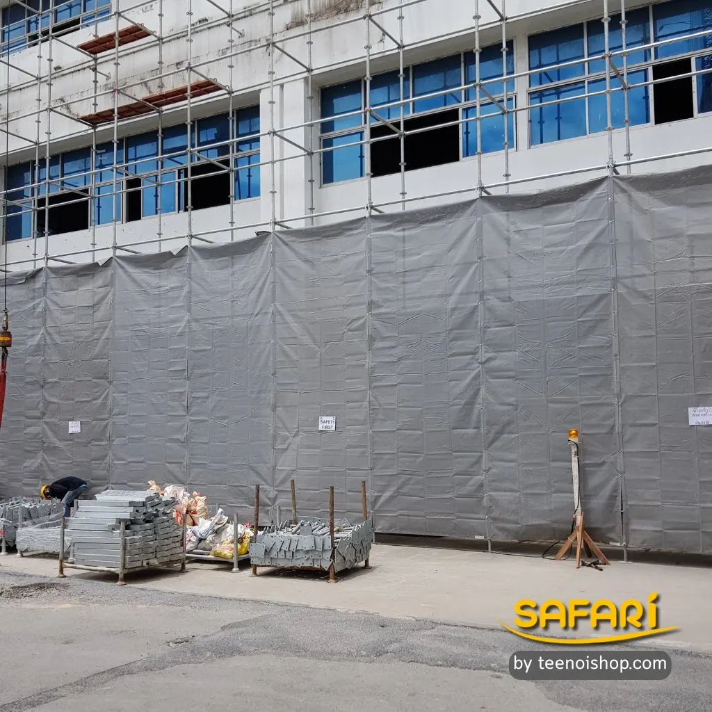 - ติดตั้งง่ายด้วยเชือกหรือตะขอ สามารถคลุมนั่งร้าน โครงเหล็ก หรือรั้วได้สะดวก