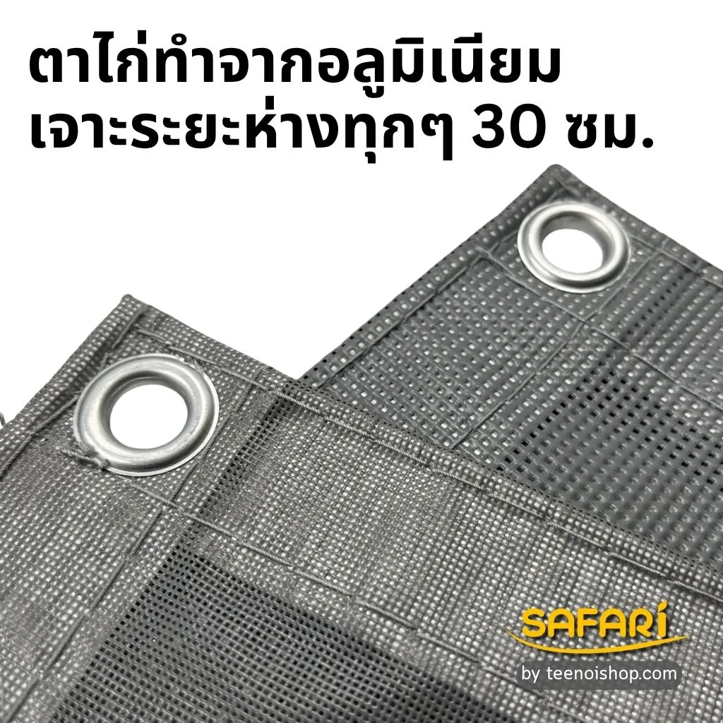 - ตาไก่ (Eyelet) ทำจากอะลูมิเนียม ระยะห่างระหว่างตาไก่ = 30 ซม.